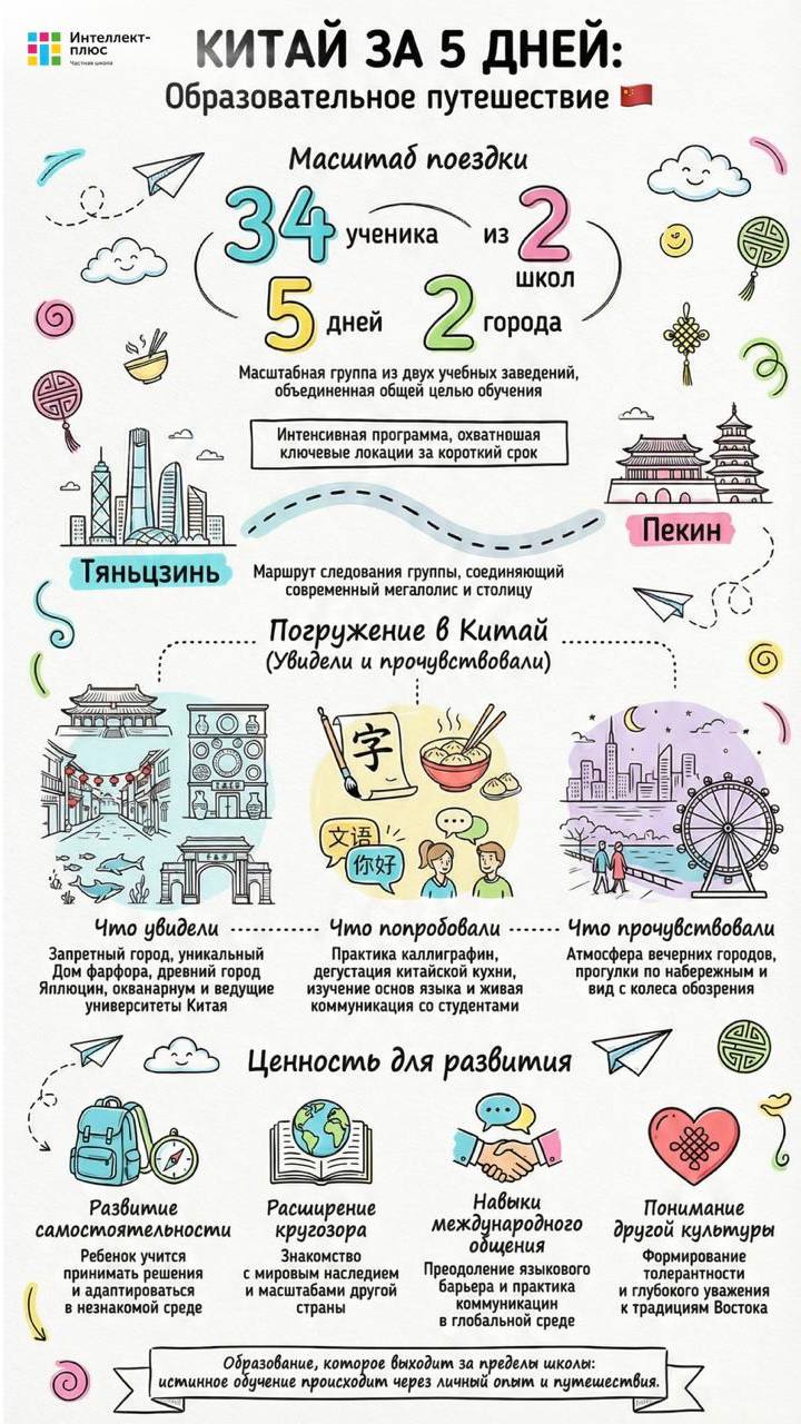 🇨🇳 На этой неделе ученики школы «Интеллект-плюс» (4–10 классы) вернулись из образовательной поездки в Китай, организованной совместно со школой «Орион» (@orion_online).